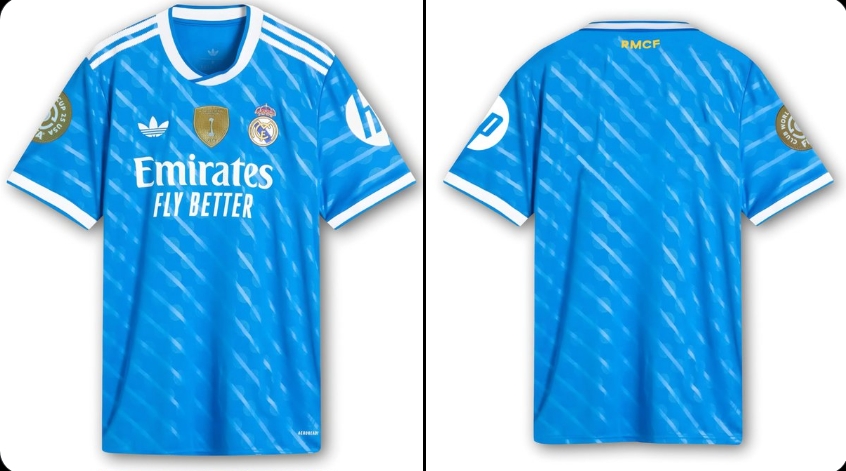 تم تسريب صور القميص الثالث لنادي ريال مدريد لموسم 2025/26، ويبدو أن التصميم هذه المرة جاء جريئًا ومميزًا، بلون أزرق لامع ونقوش مائلة تُضفي طابعًا عصريًا ومختلفًا عن المعتاد.