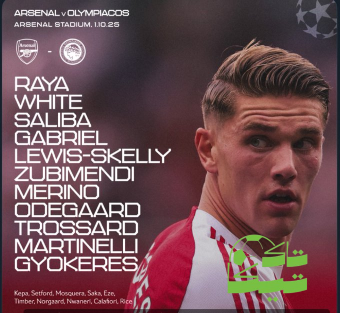تاكتيكا– أعلن نادي آرسنال عن تشكيلته الأساسية لمواجهة أولمبياكوس اليوناني، في المباراة التي تقام مساء الأول من أكتوبر على ملعب الإمارات ضمن منافسات الجولة الثانية من دور المجموعات في دوري أبطال أوروبا.