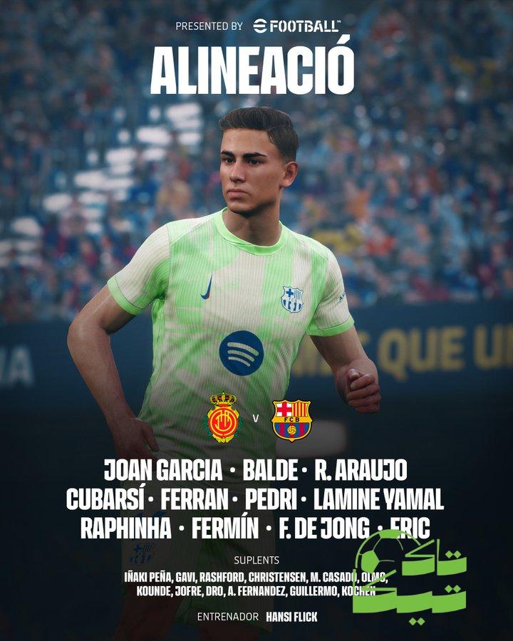 تاكتيكا– أعلن هانزي فليك، المدير الفني لبرشلونة، عن التشكيلة الرسمية التي ستخوض مواجهة ريال مايوركا على ملعب “إييرو ستار”، في إطار منافسات الجولة الأولى من الدوري الإسباني موسم 2025-2026.