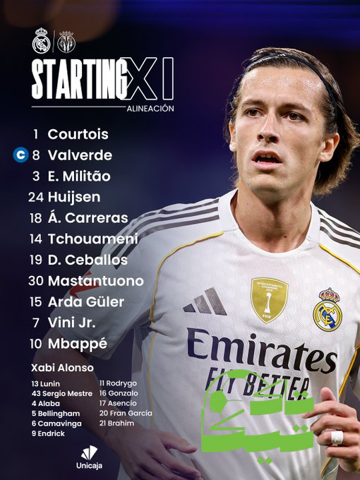 تاكتيكا– أعلن تشابي ألونسو، المدير الفني لريال مدريد، عن التشكيلة الرسمية لفريقه استعدادًا لمواجهة فياريال على ملعب “سانتياغو برنابيو”، ضمن منافسات الجولة الثامنة من الدوري الإسباني.