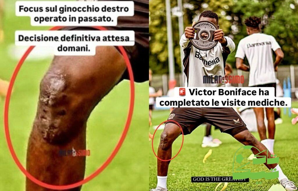 بونيفاس سبق ان تعرض لإصابة في ركبته اليمنى اثارها لا تزال واضحة للعيان مما جعل ادارة الميلان حائرة في حسم التعاقد معه بسبب تخوفها من تجدد اصابته .