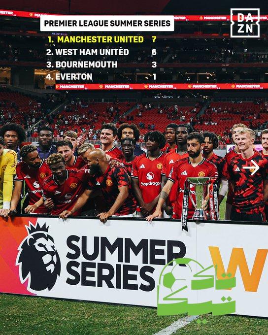 تاكتيكا — توّج مانشستر يونايتد بلقب الدوري الإنجليزي الصيفي 2025 (Premier League Summer Series) بعد تصدره الترتيب برصيد 7 نقاط من 3 مباريات، ليحصد بذلك أولى ألقابه هذا الموسم مبكرًا في الولايات المتحدة.