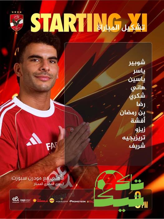 تاكتيكا– أعلن البرتغالي خوسيه ريبييرو، المدير الفني للنادي الأهلي، تشكيل الفريق لمواجهة مودرن سبورت، المقرر انطلاقها في التاسعة مساء اليوم على استاد القاهرة الدولي، ضمن منافسات الجولة الأولى من بطولة الدوري الممتاز.