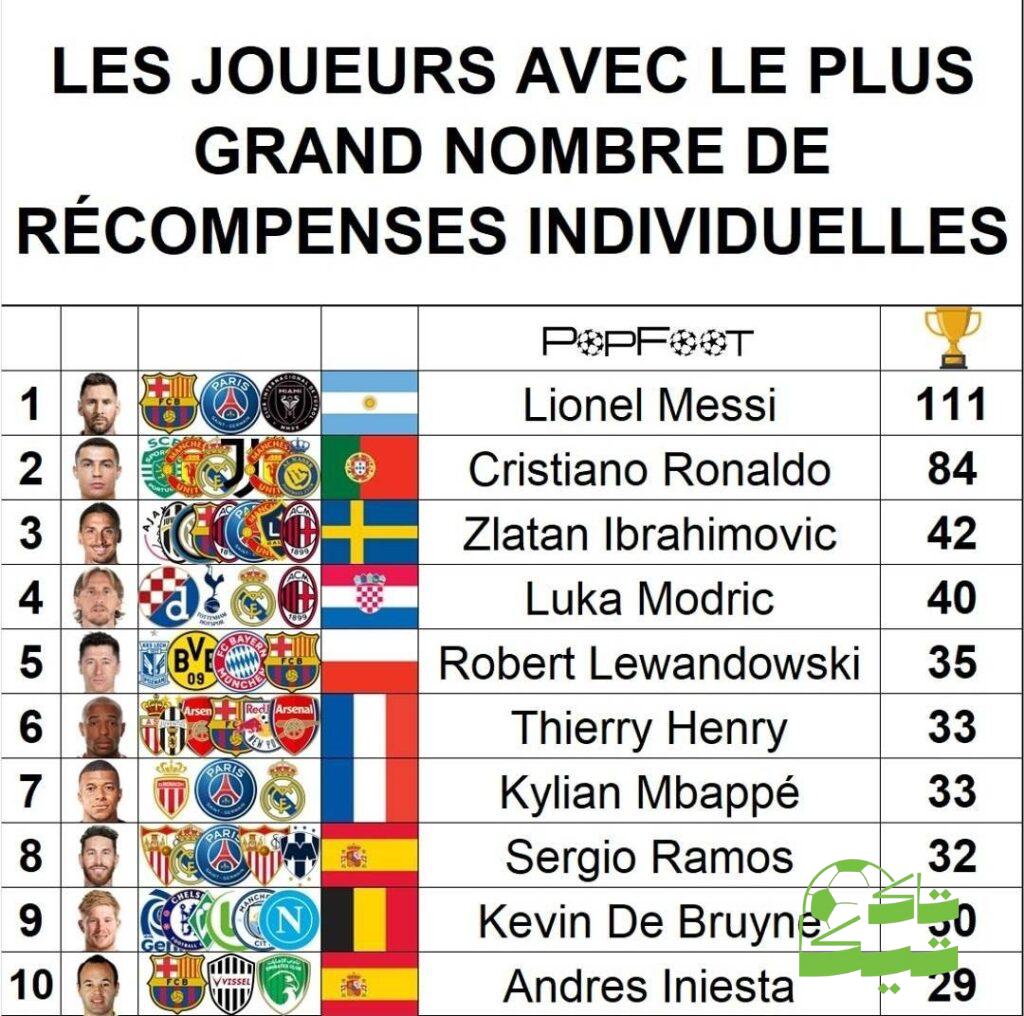 ووفقًا للموقع، فإن ترتيب اللاعبين في القائمة جاء كالتالي: