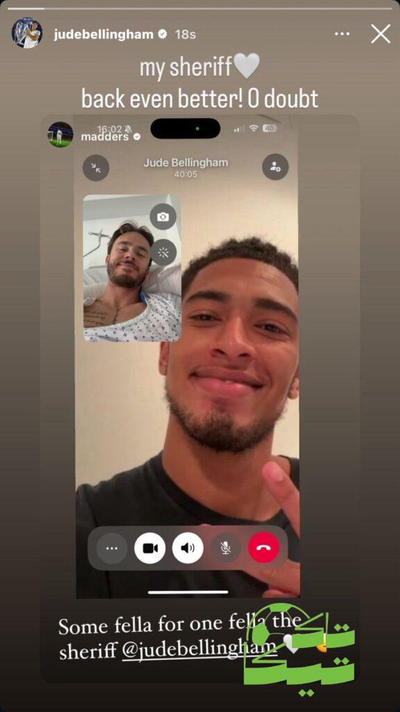 تاكتيكا– قدم جود بيلينجهام، نجم ريال مدريد، دعمه الكامل لزميله السابق جيمس ماديسون لاعب توتنهام، عقب خضوع ماديسون لعملية جراحية إثر إصابته بقطع في الرباط الصليبي.