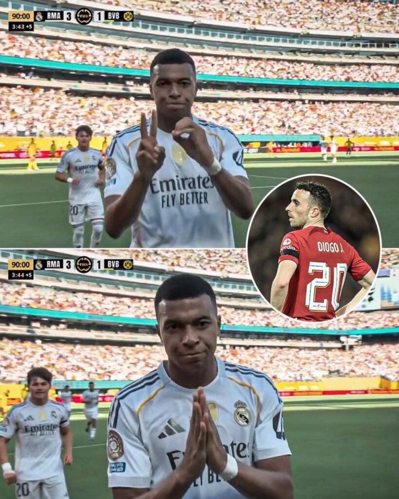 في لفتة إنسانية مؤثرة، أهدى كيليان مبابي هدفه في الدقيقة 94 من فوز ريال مدريد على بوروسيا دورتموند (3-2) إلى روح النجم البرتغالي ديوغو جوتا، الذي توفي مؤخرًا في حادث سير مأساوي.