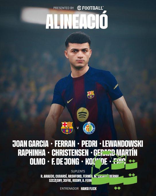 تاكتيكا– أعلن هانزي فليك، مدرب برشلونة، عن التشكيلة الرسمية التي ستخوض مواجهة خيتافي مساء اليوم على ملعب يوهان كرويف، ضمن منافسات الجولة الخامسة من الدوري الإسباني.