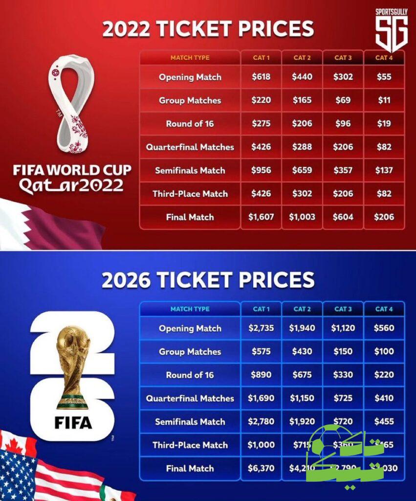 تاكتيكا– أظهرت مقارنة جديدة بين أسعار تذاكر كأس العالم 2022 في قطر وكأس العالم 2026 في الولايات المتحدة وكندا والمكسيك ارتفاعًا كبيرًا في جميع فئات التذاكر.
