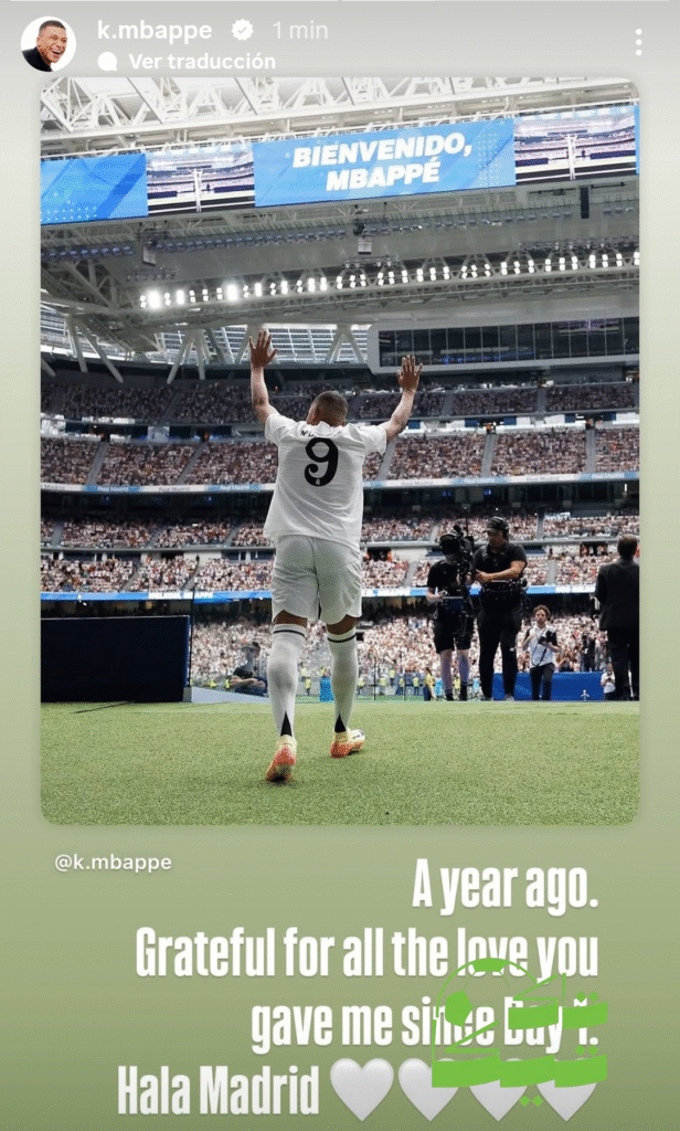 تاكتيكا — في الذكرى السنوية الأولى لانضمامه إلى ريال مدريد، وجّه النجم الفرنسي كيليان مبابي رسالة خاصة لجماهير الفريق، أعرب فيها عن امتنانه العميق للدعم الذي حظي به منذ اليوم الأول في “سانتياغو برنابيو”.