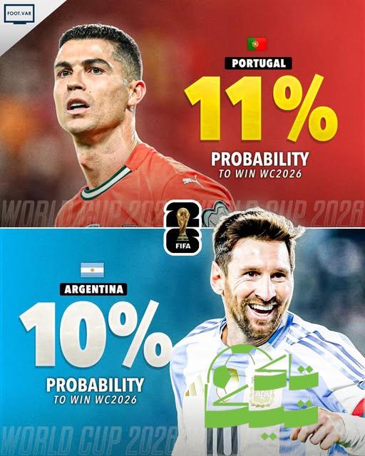 حسب الذكاء الاصطناعي فان احتمالات تتويج البرتغال بلقب المونديال القادم تبلغ 11 % مقابل 10 % لمنتخب الارجنتين .