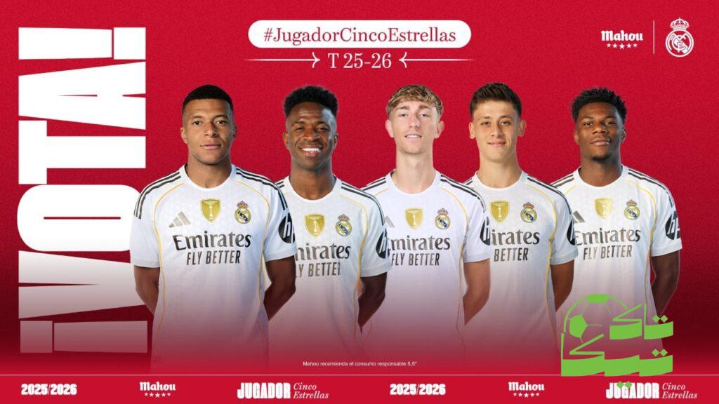 تاكتيكا — أعلن ريال مدريد رسميًا عن قائمة المرشحين لجائزة أفضل لاعب في الفريق لشهر أغسطس، حيث ضمت القائمة خمسة أسماء بارزة قدموا مستويات لافتة في بداية الموسم.