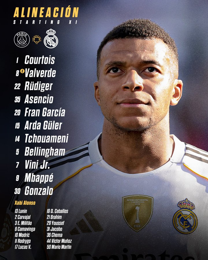 تاكتيكا- أعلن تشابي ألونسو مدرب ريال مدريد عن تشكيلة فريقه الرسمية لمواجهة نظيره باريس سان جيرمان، على ملعب ميتلايف، ضمن منافسات دور نصف نهائي بطولة كأس العالم للأندية المقامة في الولايات المتحدة الأمريكية.